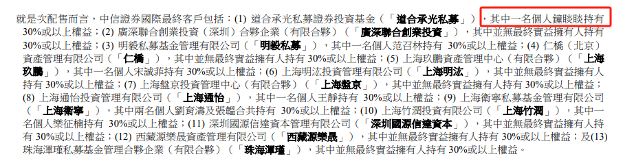 根据公司披露的打新超额配售名单,道合承光私募获配 84.68 万股,占发售股份的 2.03%,是已披露的打新机构中获配数量最多的一方。据公告,钟睒睒持有道合承光私募 30% 或以上权益。此处的钟睒睒指向农夫山泉创始人。